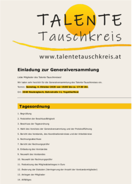 Wir laden sehr herzlich zur Generalversammlung des Talente-Tauschkreises ein!