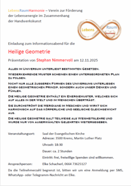 Details findet ihr in der Einladung des Vereins LebensRaumHarmonie.