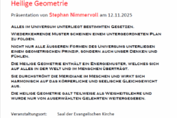 Da wir diese wieder in einem Privathaus stattfinden lassen, bitten wir um direkte Anmeldung.